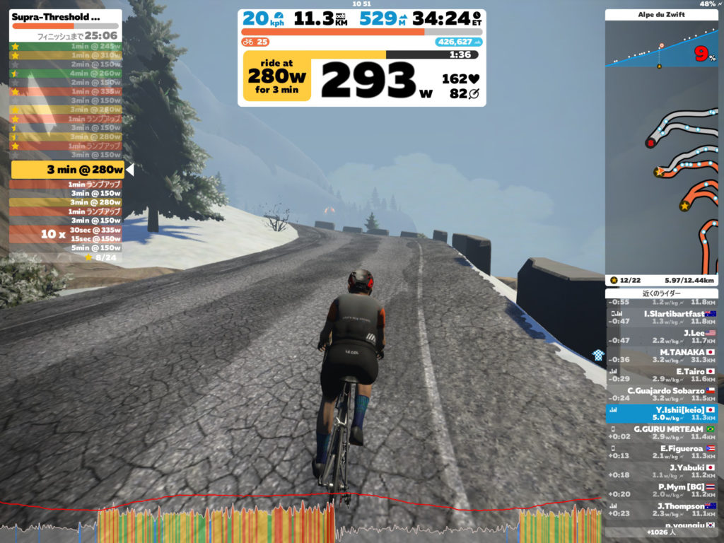 非常に辛いメニューだったが、さら脚で臨んだので完遂。