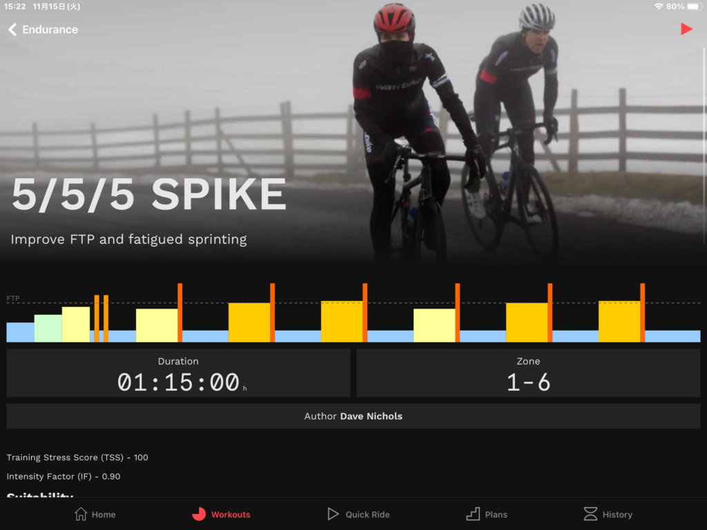 FTPを向上させるトレーニングを行った。これTSS100溜まったたらしいが、多分溜まっていない。次はこのメニューを2本やろうと思う。