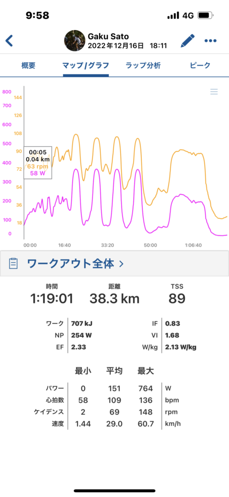 自転車と体が馴染んでいない感じがすごくて、左半身がマジで痛くなった。z2稼ぐのもきつくて降りた。左半身が硬いと見せかけて、右半身が硬いからだ、と以前指摘を受けたので全体的に伸ばさなきゃいけないのかも。ちなみにワットバイクだけではなくロードでもこの痛みを感じるので早急に改善しなければ。