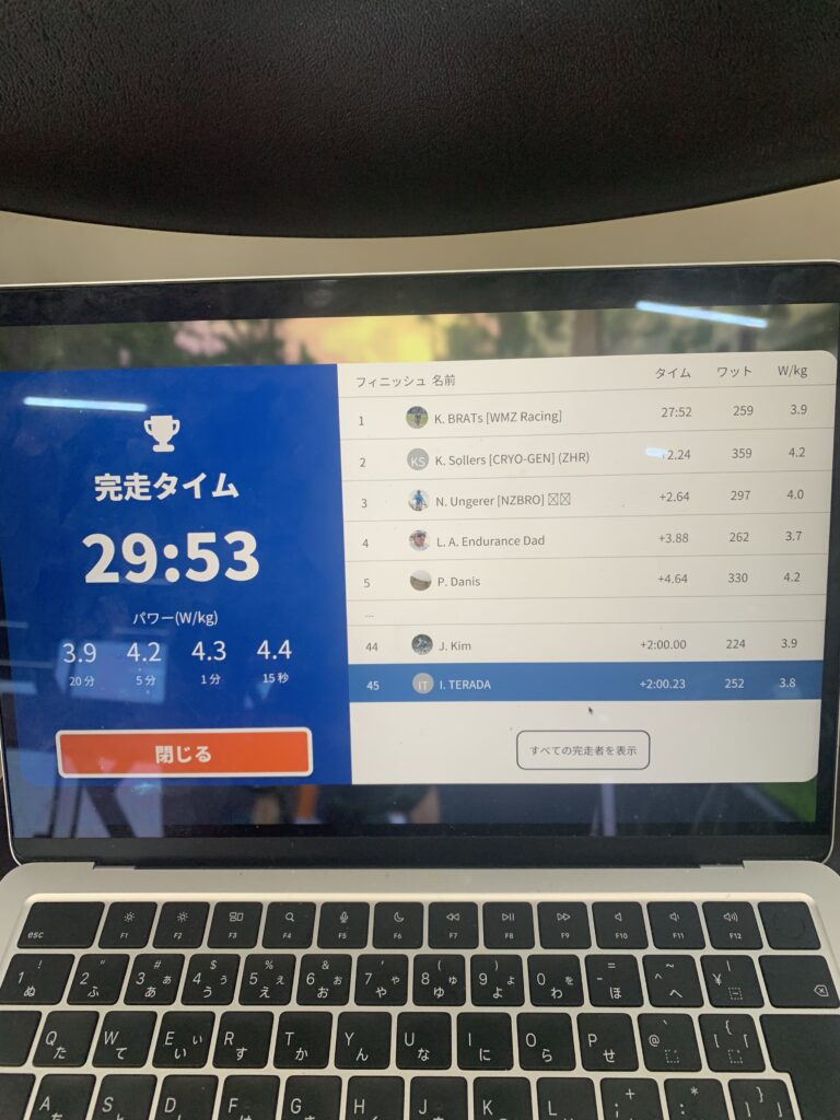 いつもは足がキツくなってパワーが出なくなるのでレースとかでもめっちゃ高ケイデンスで行こうと思う。
