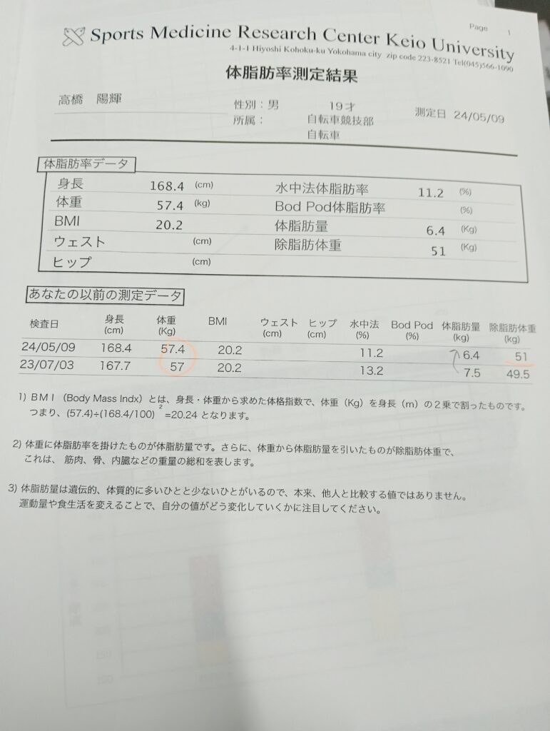 LTパワーは214w。OBRAが264w。去年からは増えたが、手放しで喜べるような数字ではない。OBLAパワーを275wにすることを去年から目標としていたので、足りない。体脂肪率は11.2%で筋肉量を増やしながらも体脂肪は少なくできた。さらに筋肉量を増やしていきたい。