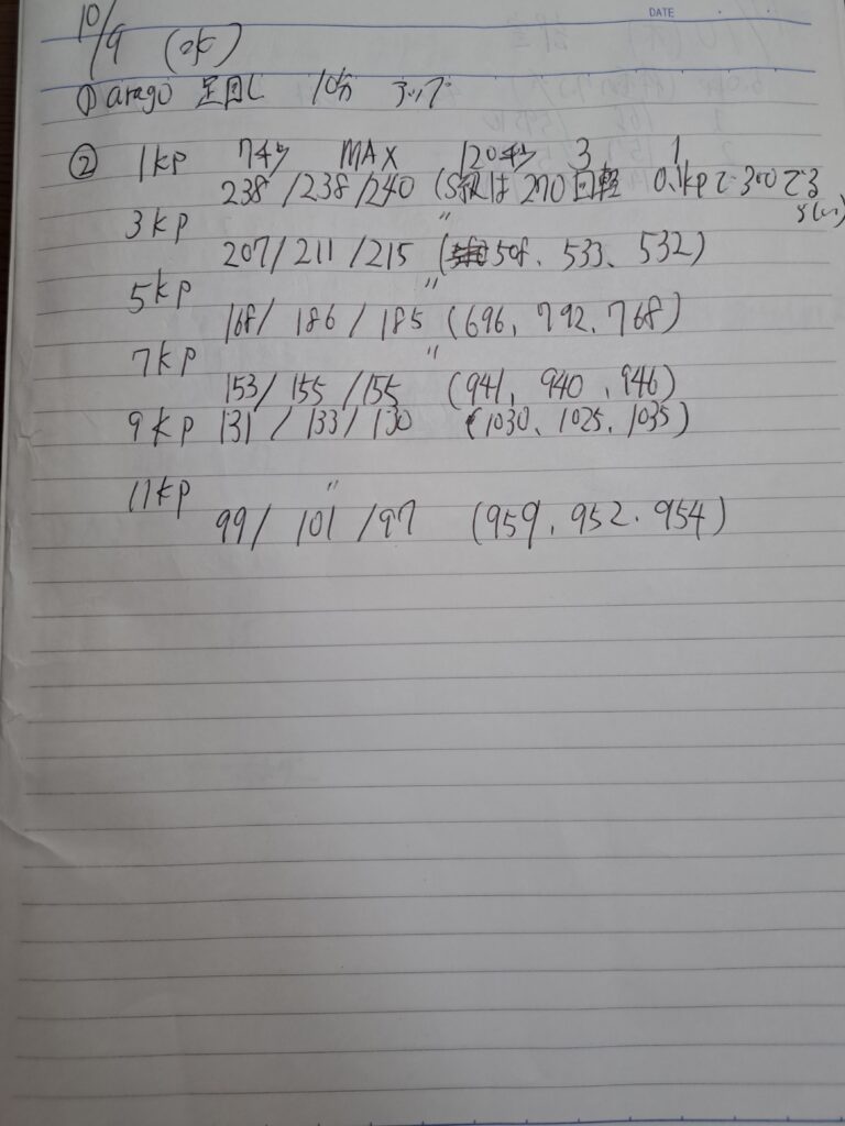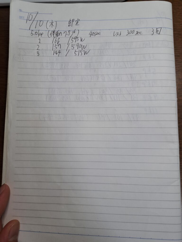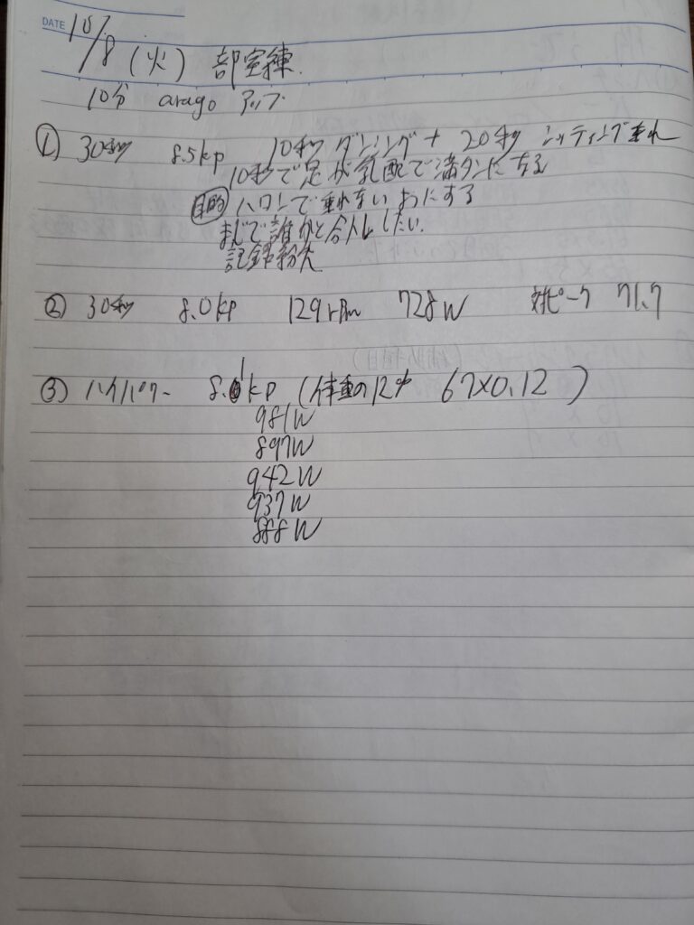 パワマのミドルは、有酸素系(1km対策)と重ギア系に分けて練習する。前者の場合5kp(体重の7.5%)、後者の場合、様子を見ながらだが8kpほど(オールシッティング)。