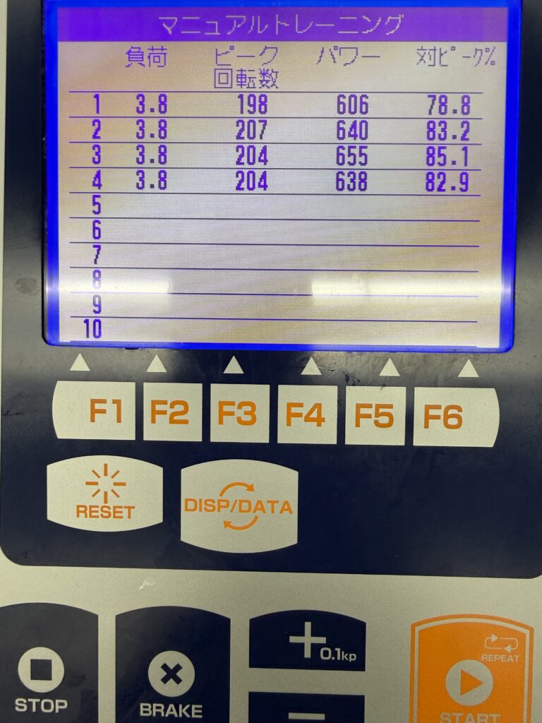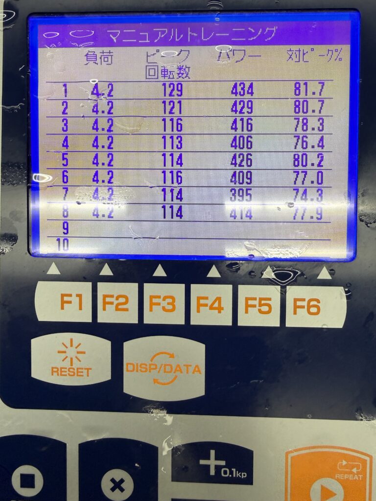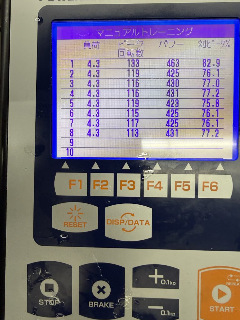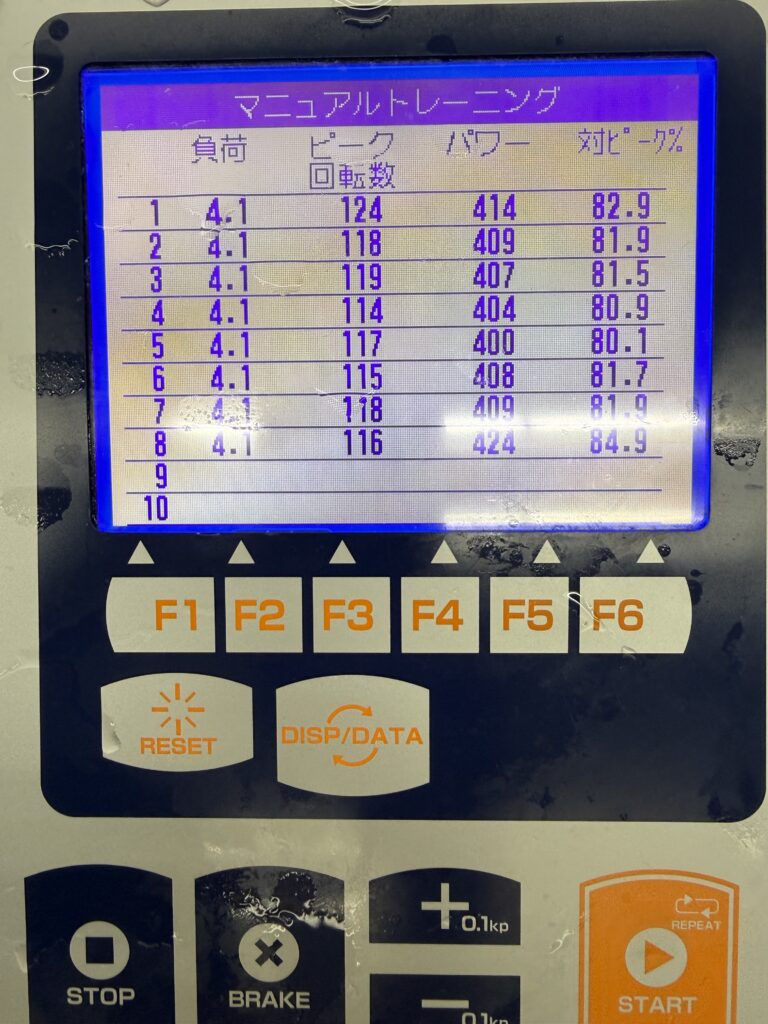 30-15はよく頑張ったと思う。数値で見ても3セット目でも今までの1セットだけ回と同様のパワーがだせている。2セット目後半人が気になって若干集中切れて回転弱くなったけれど、そこから持ち直せたのも成長。
